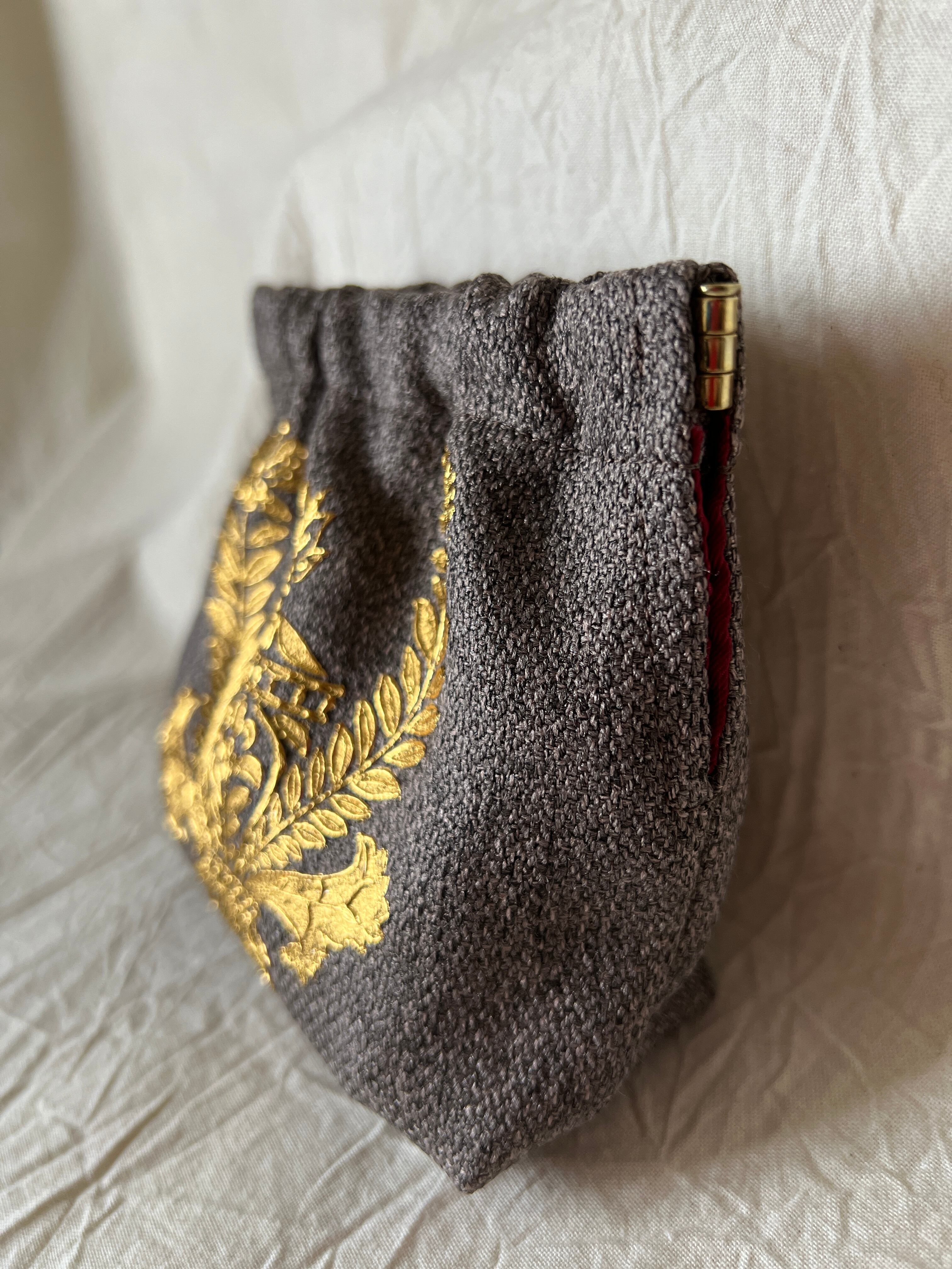 本来着物の上で輝く“金彩”をポーチに乗せました。